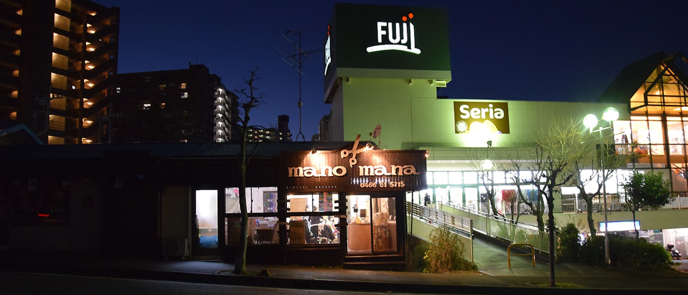 藤沢の善行駅から10分にある美容院・美容室ManoMana(マノマナ)は、カット、カラー、パーマ、縮毛矯正などの施術を扱う火曜日も営業している美容院です。FUJI(フジ)スーパーに隣接しており、車で来て買い物ついでに立ち寄られるお客様も多いです。客層も子供から大人、高齢者の方まで幅広く、貸し切り状態で気兼ねなくご利用いただける美容室です。
